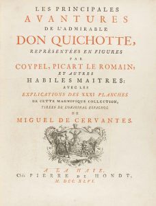 .1746. LIBRO: .(CERVANTINA). .CERVANTES SAAVEDRA, MIGUEL DE:. .LES PRINCIPALES AVANTURES DE L´ADMIRABLE DON QUICHOTTE représentées en figures par COYPEL, PICART JE ROMAIN. La Haie: chez Pierre de Hondt, 1746. Folio menor. Frontis + VIII + 330 p. +...