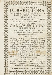 .1698. LIBRO: .(BARCELONA). .MARIANO RIBERA, MANUEL:. .REAL CAPILLA DE BARCELONA, LA MAYOR Y MAS PRINCIPAL DE LOS REYNOS DE LA CORONA DE ARAGON... ILUSTRADA Y DEFENDIDA A FAVOR DE NUESTRO GRAN MONARCA... CARLOS SEGUNDO, CON SINGULARES NOTICIAS,...