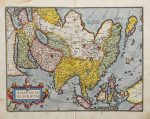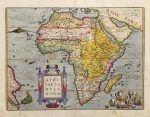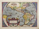 57,5 cm. [Más:] .ASIAE, Nova Descriptio.. Idem. Huella: 38,5 x 49,5 cm, papel: 44,5 x 56 cm. Pequeña rasgadura marginal, sin pérdida. [Más:] .AMERICAE SIVE NOVI ORBIS, nova descriptio.. Idem. Huella: 36 x 49 cm, papel: 43 x 56 cm. [Más:] .EL MAPAMUNDI: TYPUS ORBIS TERRARUM. Idem. Huella: 36 x 49,5 cm, papel: 43 x 56 cm. 5 mapas grabados al cobre y coloreado a mano, posteriormente. Uno de los conjuntos más elegantes de la cartografía neerlandesa. Texto en castellano, de gran calidad tipográfica. Amplios márgenes, papel de sólida textura, el mapa de Europa levemente tostado. Manchas en los márgenes y restauración en el dorso del pliegue central que no afectan al grabado, igual que el de África y el mapamundi. El mapa de Asia con rasgadura restaurada en el margen izquierdo, no afecta al grabado. Procedencia: Abraham Ortelius, Theatrum Orbis Terrarum, Ámsterdam, J. B. Vrients, 1602. Primera edición española.