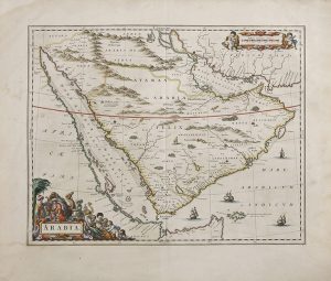 .1667.. MAPA: .BLAEU, JOAN:. .ARABIA. Ámsterdam, 1667. Huella: 42 x 53 cm, papel: 54,5 x 65 cm. Mapa grabado al cobre y coloreado a mano. Gran calidad tipográfica. Buen estado de conservación. Amplios márgenes. Papel limpio, de sólida textura,...