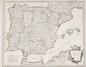 .1750.. MAPA: .(PENÍNSULA IBÉRICA).. .VAUGONDY, ROBERT:. .2 MAPAS DE LA PENÍNSULA IBÉRICA. [Paris]: Guill., 1750. 2 mapas grabados al cobre: HISPANIA ANTIQUA. Huella: 50 x 63 cm, papel: 51 x 66 cm. ROYAUMES D´ESPAGNE ET DE PORTUGAL. Huella: 50 x...