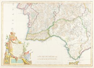 .1770 ca. MAPA: .RIZZI-ZANNONI:. .MAPA DOS REYNOS DE PORTUGAL E ALGARVE. Grabado al cobre por Marillier y Berthault. 32,5 x 45 cm, coloreado a mano. Quedaría completo con el mapa del norte de Portugal, que no se incluye en el lote. Cartela...