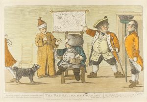 .1779.. GRABADO: .BUNBURY & BRETHERTON:. .THE DAMANTION OF OBADIAH. Grabado al cobre de 26,5 x 40 cm, huella. Pertenece a la serie de grabados que ilustraron la vida y opiniones de Tristan Shandy, por Laurence Sterne. Coloreado de época a mano.