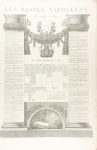 ´Les Fastes Napoléens de 1796 a 1821´. (Gravé a la Calcographie Royale de J. Goubaud a Bruxelles, 1825). 2 hojas: portadilla y portada; 6 h. de texto, 37 láminas a doble hoja iluminadas en colores (17 de ellas son MAPAS). Enc. original en media piel roja con nervios en el lomo y hierros dorados entre ellos, puntas con piel, en el plano superior gran pieza de piel octogonal con el título y autor en en dorado. Magnífico ejemplar de los pocos impresos sobre papel grueso (grand papier). Descripción de las planchas: [1] Tableau Générale (1825). [II] Tableau Générale Moderne (1825). [III] Géographie de l´Histoire (1825). [IV] Idem. Seconde partie. [V] Le monde connu des anciens (1825). [VI] La Grèce ancienne historique et fabuleuse (1825). [VII] L´Empire Romain (1825). [VIII] L´invasion des barbares (1825). [IX] Généalogie de la France (1825). [X] Détails Généalogiques des Capétiens (1825). [XI] Détails Généalogiques des Capétiens, Bourbons, etc. (1825). [XII] Carte géographique de France (1825). [XIII] Carte Généalogique et Historique d´Anglaterre (1825). [XIV] Carte Géographique d´Anglaterre (1825). [XV] Généalogie de Savoie (1825). [XVI] Carte Géographique et Politique d´Italie et d´Illyrie (1825). [XVII] Tableau Généalogique des Rois de Portugal, de Navarre, de Castille, d´Arragon et d´Espagne (1825). [XVIII] Géographie d´Espagne et de Portugal (1825). [XIX] Tablaeu Généalogique des Pays-Bas (1826). [XX] idem. Seconde partie (1826). [XXI]*Tableau Géographique et Historique des Pays-Bas (1826). [XXII] *De l´Allemagne. 1er. partie (1826). [XXIII] Généalogie de la maison de Habsbourg, ou ancienne Autriche (1826). [XXIV] De l´Allemagne (1826). [XXV] Généalogie de la maison de Lorraine, ou Autriche moderne (1826). [XXVI] Généalogie de la maison de Prusse (1826). [XXVII] Généalogies de Saxe, Bavière et Nassau (1826). [XXVIII] Généalogie des maisons de Brunswick, Bade, Hesse, Wirtemberg, Mecklembourg, et Anhalt (1826). [XXIX] Allemagne Législative en 1803, et politique en 1812 (1826). [XXX] Généalogie de la maison de Holstein (1826). [XXXI] Carte Geographique, historique de Russie (1827). [XXXII] Mappemonde Historique, Voyageurs, etc (1827). [XXXIII] L´Europe actuelle (1827). [XXXIV] Geographie de l´Asie (1827). [XXXV] Geographie de l´Afrique (1827). [XXXVI] L´Amerique actuelle aves ses nouveaux états (1827).