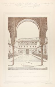 lám. III: (1870-1871) 1 h. + 72 lám. + 1 h. + 72 lám. IV: (1873-1874-1875) 1 h. + 72 lám. 1 h. + 70 lám. + 1 h. + 72 lám. Faltan 2 lám. nº 1 de marzo y nº 6 de noviembre de 1874. V: (1876-1877) 1 h. + 72 lám. + 1 h. + 72 lám. 1 lám. con pequeña pérdida de papel en una punta. VI: (1878-1879) 1 h. + 72 lám. + 72 lám. VII: (1881 y 1883) 1 h. + 72 lám. + 1 h. + 71 lám. Falta la lám. nº 2 del mes de marzo de 1883. VIII: (1886-1887): 72 lám. + 72 lám. Pequeñas restauraciones en el margen de alguna lám. Ligeras arrugas y ocasionales pérdidas de papel en los márgenes y/o puntas. 8 vol. presentados en carpetas originales de cartoné con la lomera en tela, una de ellas no es original y dos lomeras estan restauradas. Más de 1.200 lám. que contienen multitud de planimetrías, secciones y alzados de todo tipo de construcciones, tanto públicas como privadas, jardines, fuentes, composiciones y reconstrucciones de monumentos clásicos. Se incluyen convocatorias de concursos públicos de arquitectura. Las lám. van compañadas de una tabla anual de materias. La revista que presentamos tenía una periocidad de 6 lám. mensuales, se empezó a publicar en mayo de 1866, por ese motivo los primeros años se presentan de mayo a abril. En cada carpeta se incluyen las lám. de dos años, menos en una que hay tres. En conjunto 17 años casi completos de esta magna publicación.