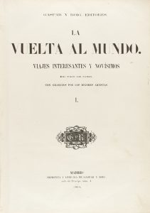 .1864-1872.. LIBRO: .(VIAJES).. .LA VUELTA AL MUNDO. Viajes interesantes y novísimos por todos los países. Madrid: Imp. Gaspar y Roig, 1864-1872. 3 vol. en 4º mayor. I:1 h. + 374 p. + 1 h. + 372 p. + 2 h. II: 358 p. + 1 h. + 369 p. + 2 h. III: 380...