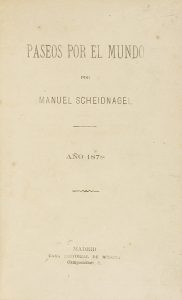.1878. LIBRO: .(VIAJES-MANILA).. .SCHEIDNAGEL, MANUEL:. .PASEOS POR EL MUNDO. Madrid: casa editorial de Medina, 1878. 8º. 221 p. + 1 h. Media piel con nervios. Primera edición muy rara. En este viaje el autor describe Filipinas y principalmente...