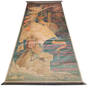 .1892.. CARTEL: .(BARCELONA-FIESTAS).. .AYMAR Y RUBIO, AGUSTI:. .FIESTAS DE LA MERCED 1892 Y IV CENTENARIO DEL DESCUBRIMIENTO DE AMÉRICA. Cartel litográfico realizado en varias hojas, se presenta entelado y con soporte de madera en el margen...