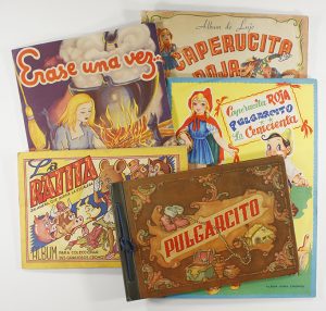 .1945 ca.. CROMOS: .(ANIMACIÓN).. .LOTE DE 5 ÁLBUMES COMPLETOS DE ANIMACIÓN. Conjunto de 5 álbumes de la editorial Fher, Aguilar y Povi. En folio menor y 4º apaisado. Incluye: LA RATITA ZALAMERA; PULGARCITO; LA CENICIENTA; 2 álbumes de la...