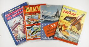 .1950 ca.. CROMOS: .(MILITARIA).. .LOTE DE 4 ÁLBUMES DE TEMÁTICA MILITAR. Conjunto de 4 Álbumes de la editorial Bruguera y Crisol, en 4º. Incluye: ÁLBUM AVIACIÓN DE 1900 A 1950; LA VI FLOTA AMERICANA EN SU VISITA A ESPAÑA; 2 ÁLBUMES DE LAS...