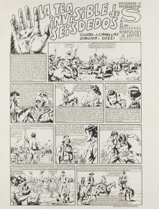 .1946.. ORIGINAL ARTÍSTICO: .(CÓMIC).. .BUIGAS:. .TBO S. Arte Original de Athos Cozzi para la portada del cuaderno Nº 18, ´La tea invisible de Seisdedos´. Tamaño 32,5 x 25 cm. Buen estado.