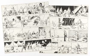 .1946. ORIGINAL ARTÍSTICO: .(CÓMIC).. .COLORÍN. Grafidea, 1946. Arte original. 5 páginas del relato titulado ´A un paso de la muerte´ Probablemente destinadas a la revista Colorín, aunque finalmente no llegaron a ser publicadas debido al...