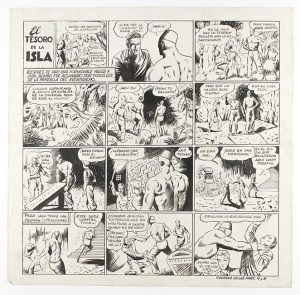 .1947.. ORIGINAL ARTÍSTICO: .(CÓMIC).. .BEYLOC:. .COLORÍN. Grafidea, 1947. Arte Original de Beyloc de la portada Nº 7 (El tesoro de la isla) y de dos páginas interiores del personaje central, Colorín. Tamaño 30,5 x 31 y 45 x 31 cm.,...