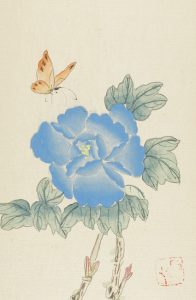 .s. XX. ORIGINAL ARTÍSTICO: .7 DIBUJOS SOBRE SEDA PINTADOS A MANO.. 15 X 10 cm. Todos con sello cuadrado o redondo en rojo de propiedad.