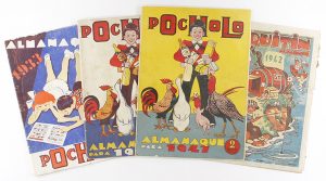.1933-1947. COLECCIONISMO: .ALMANAQUES SEMANARIOS INFANTILES, AÑOS 30 Y 40. Lote compuesto por 4 almanaques: Tres corresponden a la revista Pocholo (S. Vives, 1933, 1934 y 1947) y uno a Chiquitín (Marco, 1942) Buen estado general, con uso.