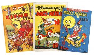 .1940-1943. COLECCIONISMO: .(ALMANAQUES).. .ALMANAQUES CLIPER/GERPLA. Lote compuesto por 3 raros almanaques: Merlín (años 1940 y 1943, con portadas de Jesús Blasco) y Cisne 1945. Buen estado.