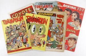 . Compuesto por 5 cuadernos, todos de especial rareza. Extraordinario del FBI, Nº 1 de El Coyote, Almanaque de Hipo, Monito y Fifi para 1957 y dos números extras de Trampolín. Varios...