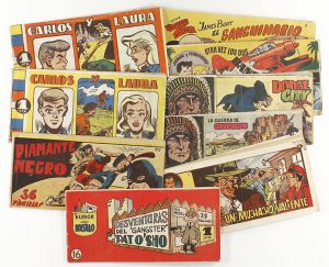 . 11 ejemplares de colecciones varias, años 40 y 50: Humor de Bolsillo, Diamante Negro, Carlos y Laura (2), El Capitán Johnson, Sitting Bull (2), Clay Sutton, Jorge y Fernando, El...