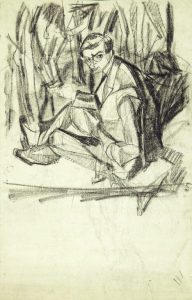 DESSIN ORIGINAL AU FUSAIN SUR PAPIER FORT DE MARCEL JANCO REPRÉSENTANT TRISTAN TZARA LISANT SUR LA SCÈNE DU CABARET VOLTAIRE, À ZÜRICH, EN 1916. AU VERSO DU DESSIN FIGURE UN AUTRE PORTRAIT DE TZARA PAR JANCO ÉGALEMENT AU CRAYON, ESSAI POUR LE PORTRAIT DÉFINITIF DE TZARA. Le cabaret Voltaire a survécu environ 6 mois, entre le 5 février, jour de l’ouverture et mi-juillet 1916. Chaque jour était organisé un programme de lecture, Tristan Tzara a participé à plusieurs de ces manifestations. Tzara et Janco, d’origine roumaine, étaient amis de longue date. Janco est venu l’été 1915 à Zürich pour étudier l’architecture et Tzara en automne 1915. Ils ont habité toute l’année 1916 dans la même pension Altinger et ont organisé ensemble les soirées littéraires dadaïstes. Marcel Janco a illustré entre autres le premier livre de Tristan Tzara et le premier de la collection Dada La Première aventure céleste de Mr Antipyrine. Provenance : Tristan Tzara Vente du 13 mai 1958, Kornfeld Klipstein, Bern, n°448 Collection of The Leonard T. Brown Family, Massachussett A partir de 1997, collection particulière européenne Expositions Caracas, Museo de arte contenporaneo, el spiritu Dada, 1980 Regensburg Museum, Brancusi, Tzara und die rumänische avantgarde, 1998 Rotterdam, Kunsthalle, Marcel Janco Dadaïst in Hart en ieren, 2002-2003 4 portraits de Tzara par Marcel Janco datant de la période Dada à Zürich furent réalisés : un tableau de l’ancienne collection Tzara, disparu, et 3 dessins dont un perdu, reproduit en vignette dans « Cabaret Voltaire », le second figure au Israël Museum de Jérusalem, et le troisième dessin et proposé ici. VÉRITABLE ŒUVRE DE MUSÉE.