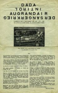 Dessin original au crayon gras et pastel signé au recto par Marcel Janco, contrecollé sur carton, figurant une danseuse, peut-être au Cabaret Voltaire, en 1916. Ce dessin est proche d’une photographie représentant Sophie Taueber-Arp dansant en 1916 au cabaret Voltaire dans un costume et masque dessinés par Janco. Expositions : Bochum Museum, Brancusi, Tzara und die rumänische avantgarde, 1997 Rotterdam, Kunsthalle, Brancusi, Tzara und die rumänische avantgarde, 1997 Regensburg Museum, Brancusi, Tzara und die rumänische avantgarde, 1998 Rotterdam, Kunsthalle Marcel Janco, 2002 Dada 4-5.Anthologie Dada. Zürich, 15 mai 1919. In-4, agrafé, couverture illustrée par Arp. Textes sur papiers de différentes couleurs, de Picabia, Tzara, Breton, Serner, etc Edition bilingue français-allemand. Reproductions d’œuvres de Picabia, Kandinsky, 9 bois gravés originaux, 5 de Arp, 2 de Hausmann, 1 de Janco, 1 de Richter et 2 lithographies de Eggeling. (Bords froissés). Dada 6. Bulletin Dada. Paris, [1920]. In-folio. Numéro publié à l’occasion de la matinée du mouvement Dada, le 5 février 1920, indiquant le programme de lecture des manifestes de Picabia, Breton, Eluard. (Deux pliures inévitables et fentes à leur intersection, deux timbres oblitérés sur le premier plat). Dada7. Dadaphone. Paris, Au Sans Pareil, mars 1920. In-8, agrafé, couverture illustrée d’un dessin de Picabia. Textes de Tzara, Picabia, Eluard, Breton. Bien complet du double feuillet imprimé sur papier rose du programme de la manifestation Dada du 27 mars 1920. Dada 8. Dada in Tirol au grand air. Paris, Au Sans Pareil, 1921. 2 feuillets in-folio imprimés recto-verso. Textes de Tzara, Arp, Eluard, Soupault. Illustration de Max Ernst et bois de Arp. (Pliure centrale). EXEMPLAIRE EXCEPTIONNEL, BIEN COMPLET DU MYTHIQUE NUMÉRO 8 DE LA REVUE DADA. DE LA PLUS GRANDE RARETÉ.