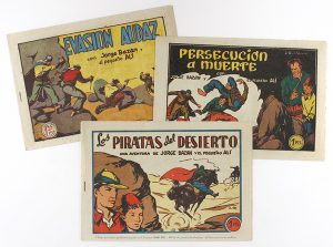 .1948.. COLECCIONISMO: .JORGE BAZÁN Y EL PEQUEÑO ALÍ. Realce, 1948. Lote de 3 cuadernos (la colección consta de 5): Los Piratas del Desierto, Persecución a Muerte y Evasión Audaz, correspondientes a los números 1, 2 y 4. Enorme rareza. Tebeos...