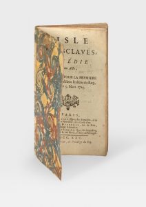 [MARIVAUX]. — L’Isle des esclaves, comédie en un acte. — Paris, Noël Pissot, Pierre Delormel, François Flahaut, 1725. — In-12, broché, couverture de papier marbré, tranches jaspées.