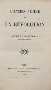 TOCQUEVILLE (Alexis de). — L’Ancien Régime et la Révolution. — Paris, Michel Lévy frères, 1856. — In-8, xxi, 456 pp., (1) f. d’errata, demi-basane verte, dos lisse orné de fleurons dorés, titre doré, tranches jaspées (Reliure de...