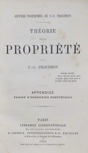 PROUDHON (Joseph) — Théorie de la propriété. — Paris, A. Lacroix, Verboeckhoven & Cie, 1866. — In-12, demi-percaline marron, dos à nerfs, titre doré (Reliure de l’époque).