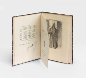 Un des 50 exemplaires signés par l’auteur (n° 76), et accompagné du dessin de A.-F. Cazals, gravé par Maurice Baud, figurant un portrait de Verlaine en tenue d’hôpital.