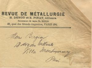 L’exemplaire d’Henri Bergson avec le bon de souscription de la Revue de Métallurgie à son nom et adresse « 18 avenue des Tilleuls, Villa Montmorency, Paris ».