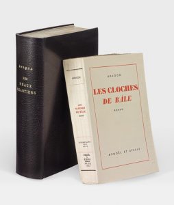 ARAGON (Louis). — Les Beaux Quartiers. — Paris, Denoël et Steele, 1936. — In-8, maroquin tête-de-nègre, titre doré, contreplat et garde en chèvre velours bordeaux et listel de box gris, tranches dorées sur témoins, couverture et dos...