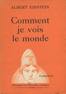 EINSTEIN (Albert). — Comment je vois le monde. Paris, Flammarion, coll. « Bibliothèque de philosophie scientifique », 1934.— In-12, broché, à toutes marges.
