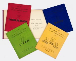 ERNST (Max). — Une semaine de bonté ou les sept éléments capitaux. — Paris, Éditions Jeanne Bucher, 1934. — 5 volumes in-4, brochés, couvertures papier de couleurs, sous étui et chemise.