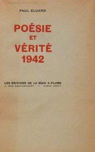 ÉLUARD (Paul). Poésie et Vérité 1942. Paris, La Main à Plume, 1942. 1 plaquette in-8, broché, à toutes marges.