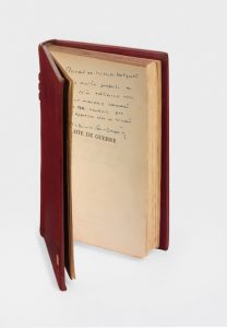 SAINT-EXUPÉRY (Antoine de). — Pilote de guerre. — New York, Éditions de la Maison française, 1942. — In-12, chagrin cerise, plats ornés de trois pastilles tricolores et filets à froid, dos à nerfs, titre doré, tête ciselée, première...