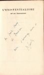 SARTRE (Jean-Paul). — L’Existentialisme est un humanisme. — Paris, Nagel, coll. « Pensées », 1946. — In-12, broché.
