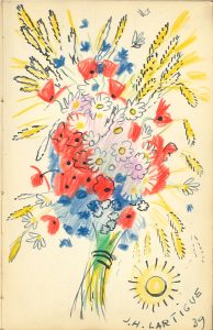 Jacques-Henri Lartigue (dessin colorié d’un bouquet de fleurs),