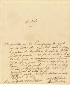 Antonio CANOVA (1757-1822). — L.A.S., — Rome 30 avril 1820, à Milady ; — 1 page in-4 ; en italien.