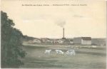La photographie de la carte postale représentant la Scierie du Vauvrilly à La Charité sur Loire a été entièrement rehaussée par Larionov à l’aquarelle et à la gouache : nuages dans le ciel, arbres en vert, maisons, prairie, avec trois vaches ajoutées…