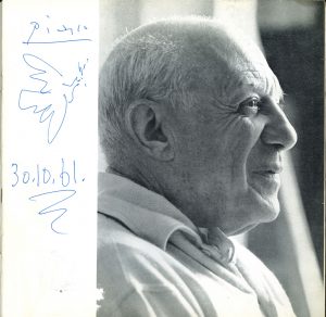À côté de sa photographie, Picasso a dessiné au stylo bille bleu une colombe, signé et daté « 30.10.31 ».