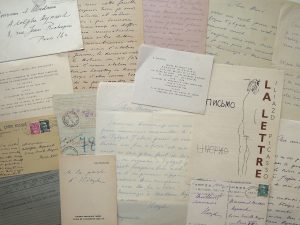 8.ILIAZD. 13 L.A.S. (certaines sur cartes) au collectionneur Adolphe Aynaud et divers documents. 20 pp. formats divers. 1948-1950. Enveloppes. Cachet de la collection Debauve sur tous les documents.L’éditeur, le bibliophile et l’ami des...