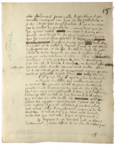 Mercure de France (vol. LXVIII n°244, 15 août 1907, pp. 648 à 668), signé du pseudonyme Max-Anély. Annie Joly-Segalen, fille de Victor qui, durant soixante ans, a travaillé à la publication et la reconnaissance de l’œuvre de Segalen, ayant consulté le manuscrit, a confirmé qu’il est une copie de la main du père de Segalen, et que seules les pages 15 et 28 sont de la main de Victor, ainsi que la numérotation. Ajoutons que les corrections sont également de la main de Victor Segalen. La double numérotation à l’encre sur les seules pages 15 et 28, le confirme en effet. Le manuscrit a servi à l’impression (notes de typographes). Il n’en reste pas moins un manuscrit d’une grande rareté.Il est joint un fort dossier documentaire sur Victor Segalen.