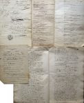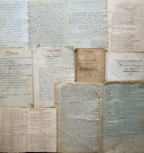a également paraphé un certain nombre de pages ; manuscrit déchiré en 2 et recollé). Le Tableau de Paris ou le divorce imprévu par M. le T… de Neuville (1787, 45 pp.). L’envieux comédie en cinq actes composée en 1790 (133 pp.). Les Fourberies de Crispin (les deux premiers actes seuls, quelques corrections, fin XVIIIe, la scène se déroulant en 1786). Valérien mourant tragédie en 5 actes et en vers (janvier 1790, premier acte seul). Demetrius tragédie en cinq actes par M. de St Marcel (1789, 70 pp. in-4, mouillures, avec approbation pour la représentation et l’impression signée du censeur Suard, 14 juin 1789 ; nombreuses corrections). Le Fermier hollandois ou le triomphe de l’innocence (50 pp. in-folio, nombreuses corrections).•Sapho, scène lyrique, musique de Garcia (titre + 11 pp. ½ in-folio ; mention « reçu à la Comédie française le 20 oct. 1824 »). Une excellente amie, comédie en trois actes, en prose par L.P. Donnadieu-Lamarine (64 pp. in-folio, nombreuses corrections : mention « déposé entre les mains de M. Gustave Vaez, l’un des trois directeurs de l’Odéon, le 10 août [18]54 »). Myrrha, tragédie en cinq actes par Blaise Dominique Lemaître-Bonnifleau (67 pp. in-folio, début XIXe s.).On joint le manuscrit d’une pièce, La Belle jeune fille de 1812 (1909).