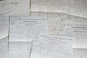 20.MUSIQUE de L’EMPEREUR à SAINT-CLOUD. 6 P. S. par Jean-François Lesueur, directeur de la Musique de l’Empereur, contresignées par le premier chambellan Rémusat. 1806. Cachet de la collection Debauve sur tous les documents.Mémoires des...