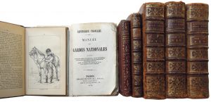 volumes in-8, reliure de l’époque veau marbré, dos à 5 nerfs orné. Épidermures, coiffes et coins usés. Qq. rousseurs ou ff. brunis. Ex-libris :cachet Colonel A. Féry.•DAVON. Analyse Critique des Faits Militaires de César, racontés par lui-même. Genève, s. n., 1779.In-12, reliure de l’époque maroquin bordeaux, dos lisse orné, triple filet doré en encadrement sur les plats, tranches dorées. Qq. frottements, petit manque à la coiffe supérieure. 194 pp. Qq. rousseurs. Ex-libris sur le faux-titre : cachet Colonel A. Féry.•[DONOP]. Historique Abrégé du 4e Régiment de Chasseurs. Saint-Cloud, Belin, s. d.In-16, cartonnage demi-percaline bleue, plats imprimés. 164 pp. Vignettes dans le texte. Envoi au Colonel A. Féry (avec son cachet ex-libris). Joint une lettre et deux cartes postales de l’auteur à Mme Féry.