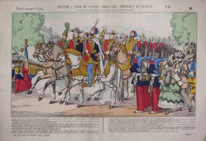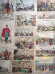 Guerre du Mexique, siège et prise de Puébla; Mort de Maximilien, empereur du Mexique; Arrivée à Paris du sultan Abdul-Aziz, empereur de Turquie; Condamnation et exécution de Troppmann. Bon état.•Guerre de 1870 et Napoléon III. 24 planches en couleurs : Portrait de Garibaldi, Garibaldi et ses volontaires, Maréchal de Mac-Mahon, Condamnation à mort du maréchal Bazaine, Mort de Napoléon III, Défense de Chateaudun, Bataille de Coulmiers, Siège et bombardement de Paris par les Prussiens, Siège et bombardement de Strasbourg, Désastre de Sedan, Bataille de Reichoffen, Bataille de Gravelotte, Défense de Belfort, Bataille de Dijon, Prise de Saarbruck… Une planche déchirée en deux, les autres en bon état.•Guerre d’Orient (1877). 6 planches : Passage du Danube, Passage du Danube par les Russes, Bataille de Karahasan, Combat d’Erzéroum, Attaque du Col de Chipka, Prise des redoutes de Plewna. Bon état.