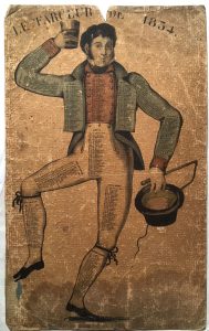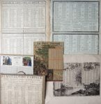 carton.•Almanach de Cabinet pour l’an bissextil 1812. Aix, Pontier, 1812. Grande feuille (46 x 37 cm) à toutes marges (petites déchirures marginales restaurées au verso). Qq. annotations en marge.•Almanach de Cabinet pour l’an de Grâce 1818. Aix, Mouret, 1812. Grande feuille (46 x 36,5 cm) à toutes marges. Très bon état.•Le Farceur de 1834. Personnage avec haut de forme et fouet, les colonnes des mois sont inscrites sur les différentes parties de l’habit. Monté sur carton, sali et abîmé avec manques. 44,5 x 27 cm.•Almanach de Cabinet. Paris, Dubois-Trianon, 1848. Carton recto-verso (env. 21 x 25,5 cm) avec vignettes coloriées en tête. Bon état.•Calendrier. Rennes, Oberthur, 1863. Carton (env. 21 x 26,5 cm) avec calendrier d’un côté et 2 ff. de renseignements de l’autre. Usures.•Le Petit Journal 1889. Chromo (26 x 20,5 cm). Marges découpées.