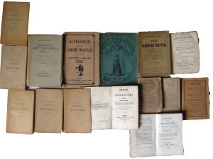 beige. 271 pp.•Année Théâtrale. Almanach pour l’an XI… Paris, Courcier, 1802. In-12, broché. Couverture d’attente.•Almanach des Spectacles pour 1823, 1824, 1830, 1831, 1835 … Paris, Barba.5 volumes in-12, brochés. Selon les volumes, on y trouve : Actualité théâtrale, histoire des théâtres parisiens et de province avec les administrateurs et principaux comédiens, répertoire des œuvres jouées, prix obtenus au Conservatoire, prix des places …•CÉLÈS (Jules). Almanach des Cafés Chantants. 1ère année. Paris, Brouillet et Coulon. In-8, broché. Couverture illustrée. 64 pp.•TESSIER (Henri) et MARCEL (L.). Almanach théâtral 1874. Paris, En vente dans tous les théâtres. In-12, br. Couv. un peu défraîchie.•SOUBIES (Albert). Almanach des Spectacles. Année 1892. Coup d’œil d’ensemble 1871-1891. Années 1895, 1896, 1897, 1901, 1902. Table duodécennale (1902-1913). Eau-forte par Lalauze. Lib. des Bibliophiles, 1892, 1893, 1895, 1896, 1897, 1901, 1902, 1915. 8 vol. in-12, un relié (plat détaché) et 7 brochés. Dos cassé sur 4 vol., les autres en bon état. Envoi de l’auteur à Halpérine-Kaminsky sur tous les volumes.