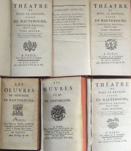 deuil, Le cocher.•Les Œuvres. Paris, Ribou, 1703. In-12, reliure veau brun, dos à 5 nerfs orné. Contient : Crispin médecin (Ribou, 1705); Crispin musicien (Ribou, 1680); Le deuil (Ribou, 1680); Les bourgeoises de qualité (Gontier, 1691); L’Esprit follet (Ribou, 1698).•Les Œuvres. Nouvelle édition revue & corrigée. Times 1 à 3. Paris, Aux dépens de la Compagnie, 1772. 3 volumes in-12, reliure veau (manque pièces de titre, état moyen).
