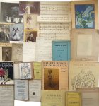(signature) G. Labiche en page de titre.•RÉPERTOIRE. Professeurs de Chant. Directeurs de théâtre et Cafés Concert. Paris, 1910. In-12, reliure demi-chagrin rouge, caisson de tête manquant. Répertoire élaboré par un amateur, illustré de photographies extraites de revues avec les noms de 75 professeurs de chant et 20 directeurs de théâtre, classés par ordre alphabétique. •GASTOLDI (Jean-Jacques). Ballet Italien. Les Spectateurs. Illustrations de Bernard Naudin. Martine, s. d. In-4, broché. Couverture illustrée. Paroles et musique et 22 dessins de Naudin à pleine page.•[DUNCAN]. RODIN. Numéro de l’Œuvre consacré à Isadora Duncan. Publication mensuelle n° 11 de novembre 1911. Dessins de Auguste Rodin en couverture et dans le texte (détachés). Couverture défraîchie, petite déchirure en marge d’un f.•Théâtre Marigny. Les Représentations de Madame Argentina avec sa troupe de ballets espagnols. Juillet 1929. Programme. Bel état.•On joint des photographies : la belle Chiquita, Fanny Liona, Lina Dilson… des lettres d’artistes lyriques et compositeurs : Thibbault Tauffenberger, Henri Lutz… une partition manuscrite : L’Anglais et le gamin de Paris.
